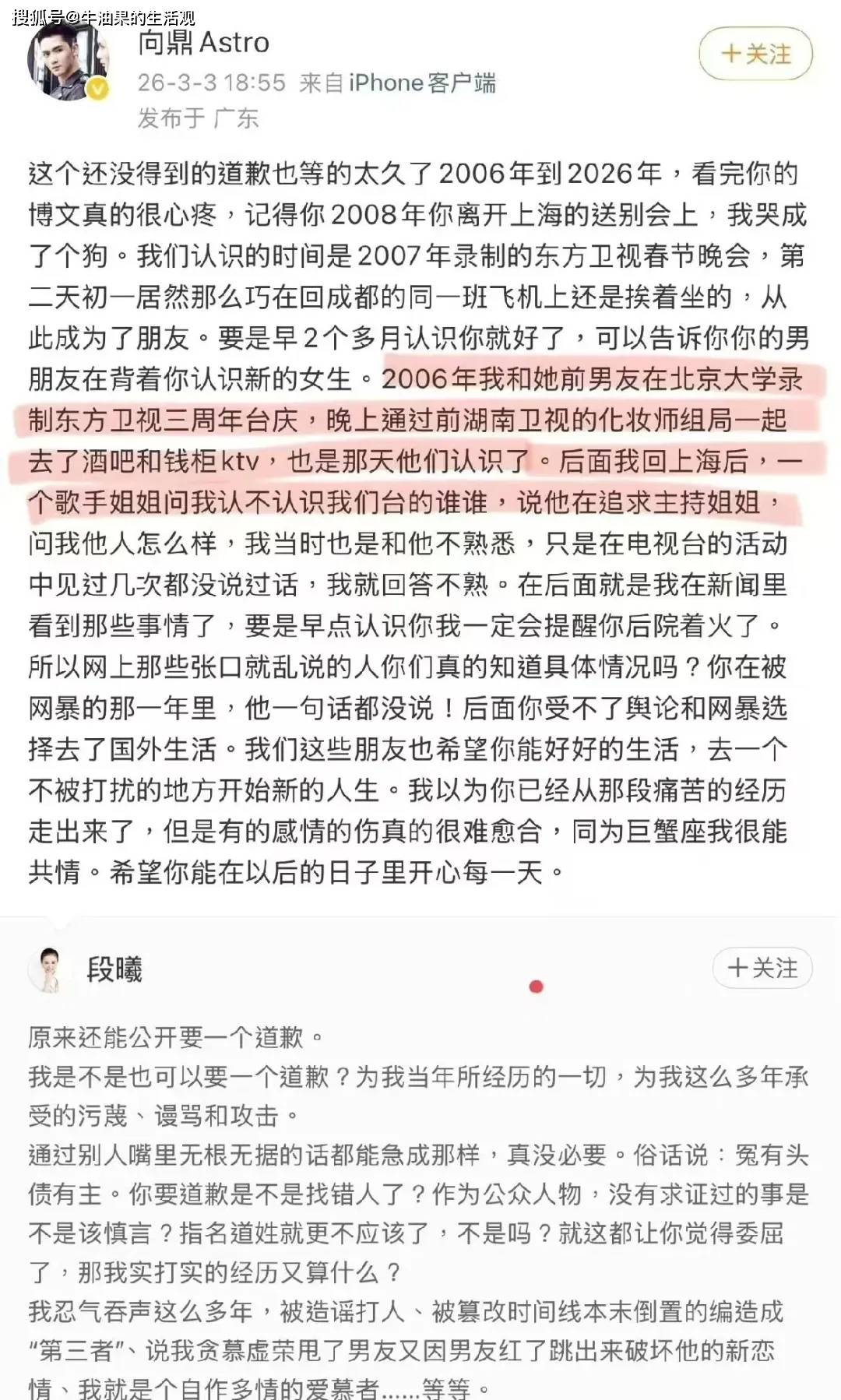 段曦这次发声,从不是蹭热度。她力挺薛之谦,是同是被辜负者的共情;她重提旧情,是为自己背锅20年讨一个公道。